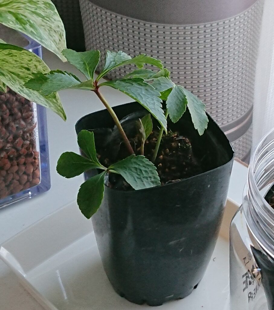 2か月後くらいだったと思う(写真に日付がついてなかったため推測)。4号鉢へ植え替えた。薄緑色の新しい葉が展開し、室内でも成長しているようだ。