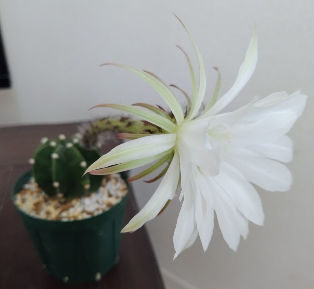短毛丸が属するエキノプシス属はその見た目からでは想像できないほど大きく美しい花が咲く。