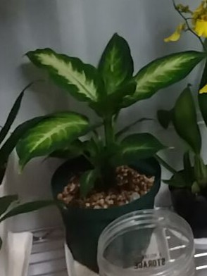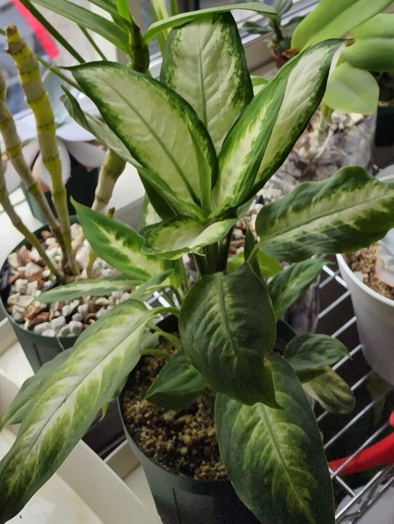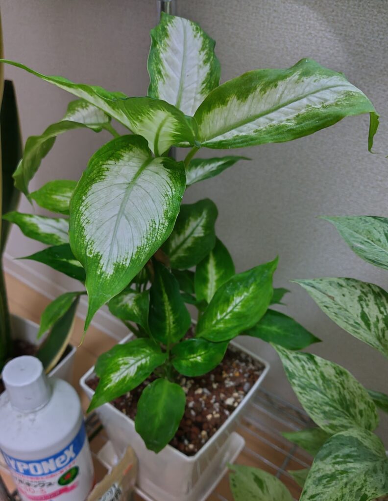 デフェンバキア・カーミラは少ない光量でもぐんぐんと大きくなり、存在感を放つ観葉植物だと思う。
